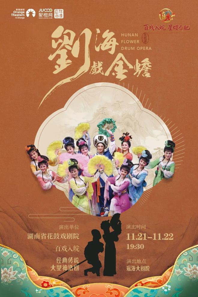 演出简介:深山修炼了五百年的金蟾精,炼就了七枚金钱,他还想夺取狐仙九妹胡秀英的红光宝珠,以便凑足千年道行,成仙升天。天真善良的狐仙九妹爱上了勤劳孝顺的青年樵夫刘海,并与之结为夫妻,用红光宝珠使刘母双目重见光明,一家人幸福美满的生活着。金蟾精夺珠不成,又生奸计,中秋佳节,幻化成一叟,从刘母手中骗走宝珠。狐仙胡秀英失去了护身之宝,生怕露出原形吓坏刘海母子,只得忍痛割爱,离开家来到深山老林,刘海闻讯,不顾雨骤风狂,天黑路险,追赶入深山。胡秀英,最后在护身蛇神的帮助下,夺取宝珠,夫妻团圆,金蟾精反而失去七枚金钱,受到唾骂和戏弄。